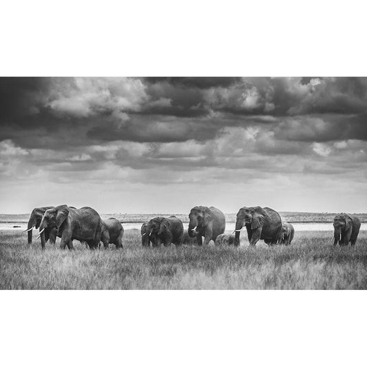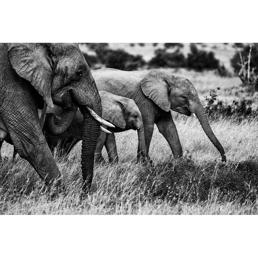 Elephant Family Black Modern Wood Framed Art Print by Vidak, Vedran