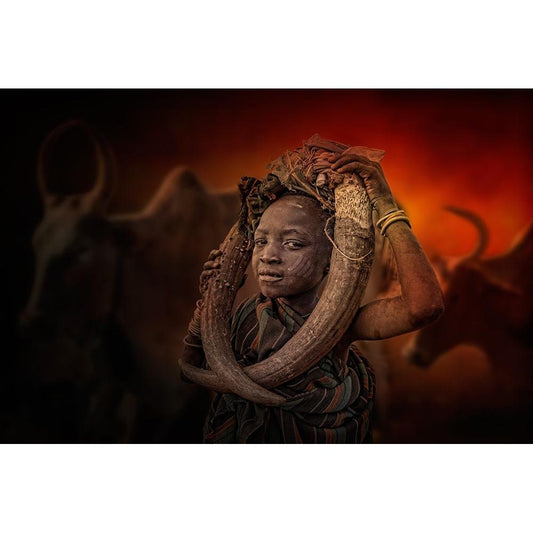 Nyangatom People Black Modern Wood Framed Art Print by Yosifov, Svetlin