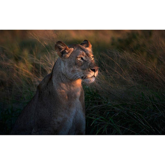 Lioness At First Day Ligth Black Modern Wood Framed Art Print by Ortega, Xavier