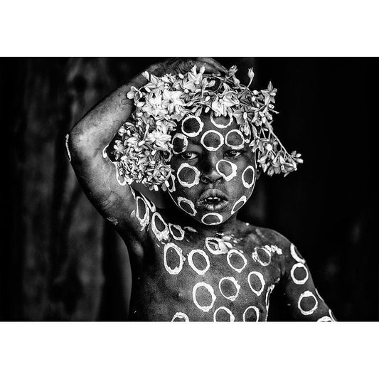 Boy From Mursi Tribe Black Modern Wood Framed Art Print by Yosifov, Svetlin