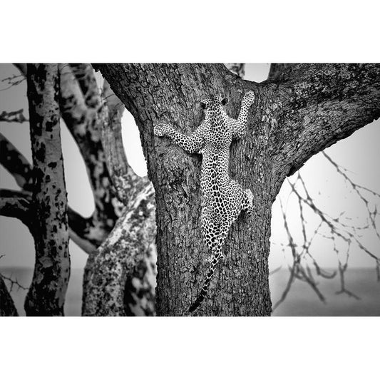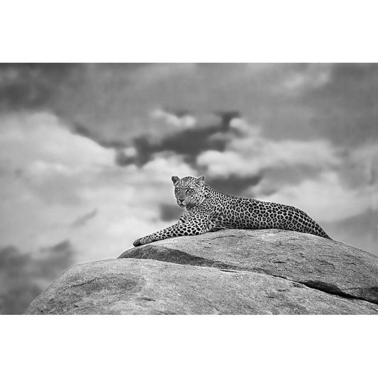 Leopard On A Kopje Black Modern Wood Framed Art Print by Moreno, Mario