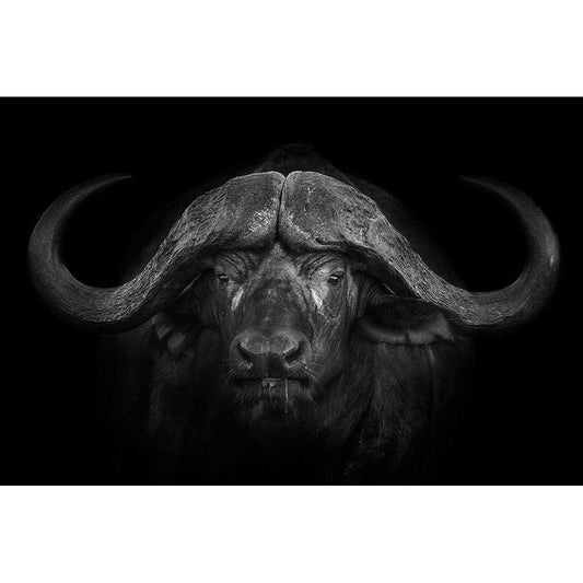Ngorongoro Bull Black Modern Wood Framed Art Print by Moreno, Mario