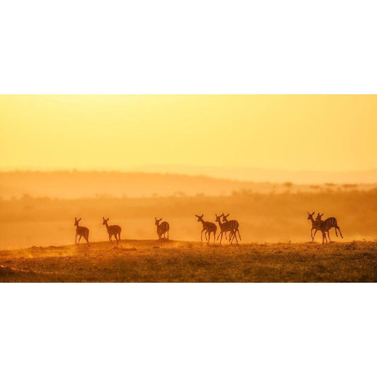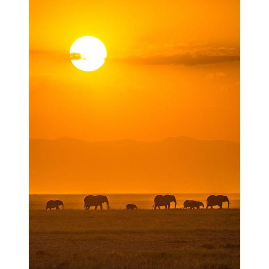 Elephants At Sunset Black Modern Wood Framed Art Print by Taylor, Ted
