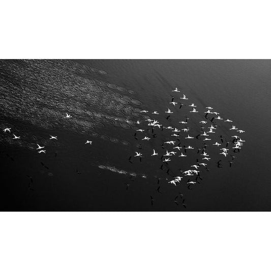 Flamingos Over The Clouds Black Modern Wood Framed Art Print by Chang, Phillip