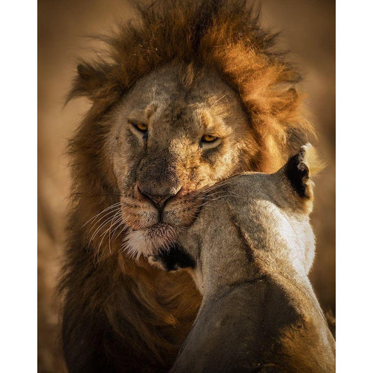 Lion And Lioness Portrait Black Modern Wood Framed Art Print by Lothare Dambreville, Laurent