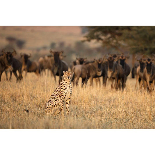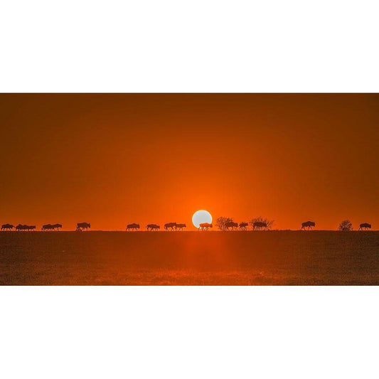Wildebeests Walking In Golden Light Black Modern Wood Framed Art Print by Hua, David