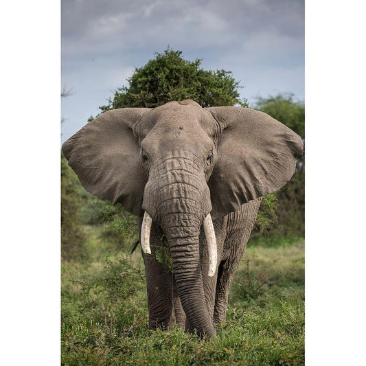 Africa-Tanzania-Ngorongoro Conservation Area-Bull Elephant while feeding Black Modern Wood Framed Art Print by Souders, Paul