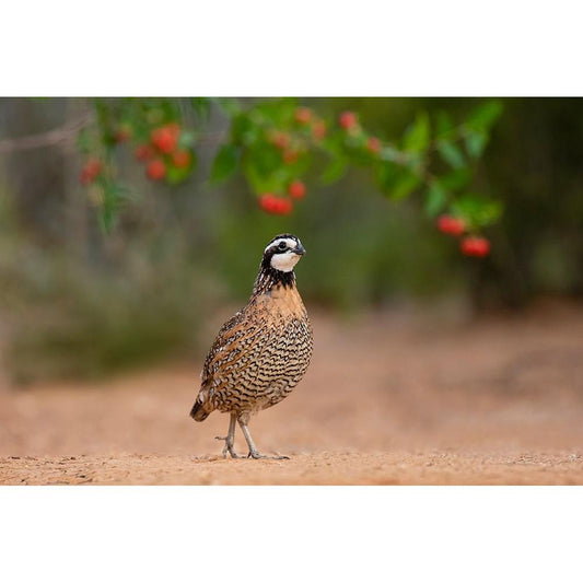 Northern Bobwhite-Colinus virginianus-feeding Black Modern Wood Framed Art Print by Ditto, Larry
