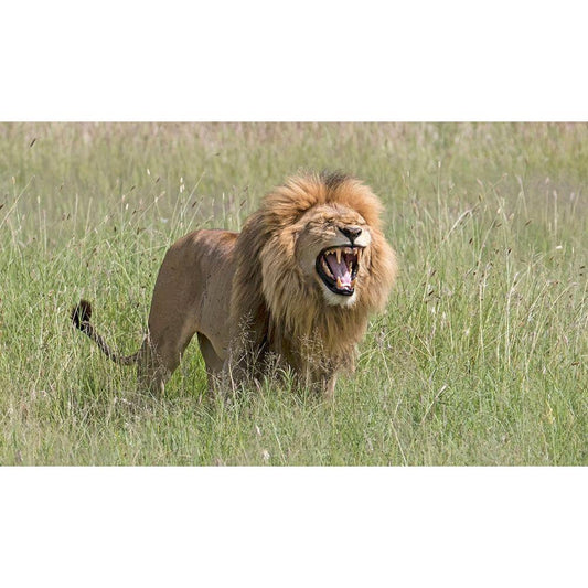 Africa-Tanzania-Serengeti Lion displaying the Flehmen reaction Black Modern Wood Framed Art Print by Sleicher, Charles