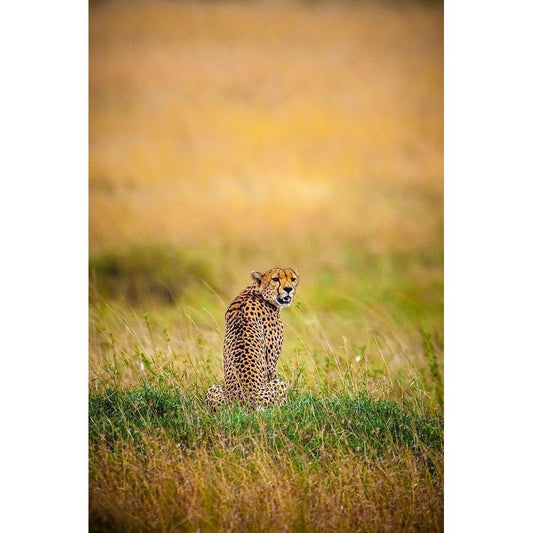 A male cheetah looks back Black Modern Wood Framed Art Print by Richardson, Larry