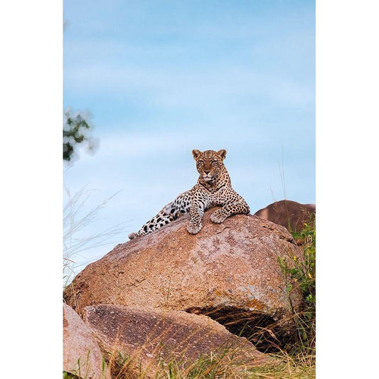 Africa-Tanzania-Serengeti National Park Leopard resting on boulder Black Modern Wood Framed Art Print by Jaynes Gallery