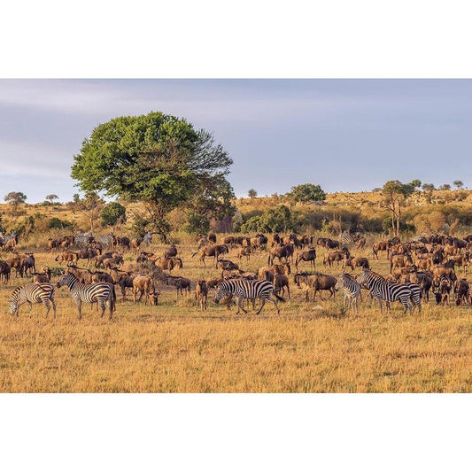 Africa-Tanzania-Serengeti National Park Zebras and wildebeests on plain Black Modern Wood Framed Art Print by Jaynes Gallery
