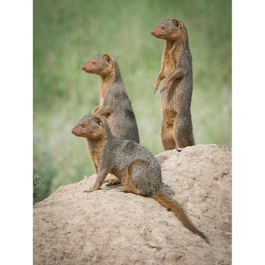 Africa-Tanzania A family of pygmy mongoose keeps vigil from atop an ant hill in the Serengeti Black Modern Wood Framed Art Print by Sederquist, Betty