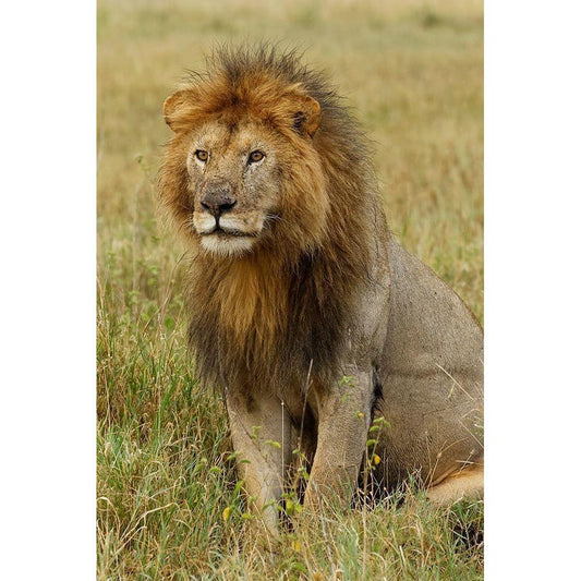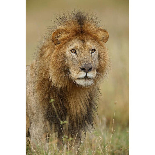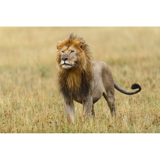 Adult black maned Lion-Panthera leo-Serengeti National Park-Tanzania-Africa Black Modern Wood Framed Art Print by Jones, Adam