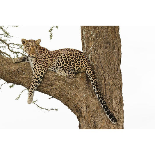 African leopard in tree-Panthera pardus pardus-Serengeti National Park-Tanzania-Africa Black Modern Wood Framed Art Print by Jones, Adam