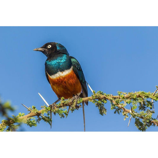 Africa-Tanzania-Serengeti National Park Hildebrandts starling on thorny tree Black Modern Wood Framed Art Print by Jaynes Gallery