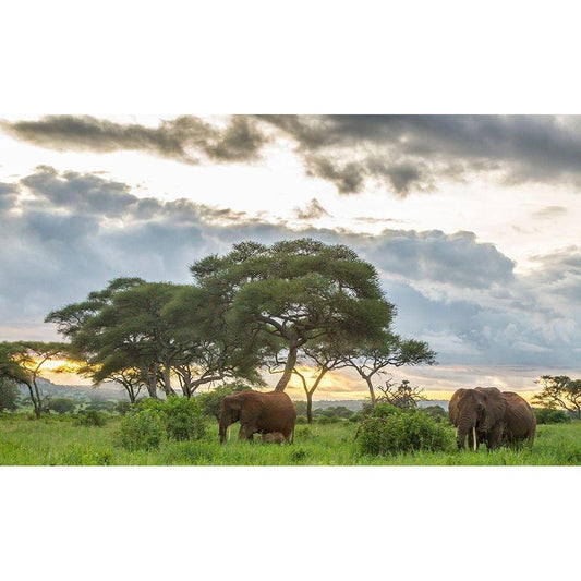 Africa-Tanzania-Tarangire National Park African elephants at sunset Black Modern Wood Framed Art Print by Jaynes Gallery