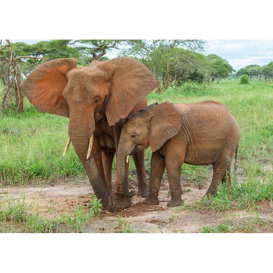 Africa-Tanzania-Tarangire National Park African elephant adult and baby Black Modern Wood Framed Art Print by Jaynes Gallery