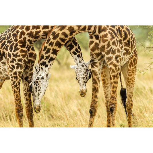 Africa-Tanzania-Serengeti National Park Young Maasai giraffes sparring Black Modern Wood Framed Art Print by Jaynes Gallery
