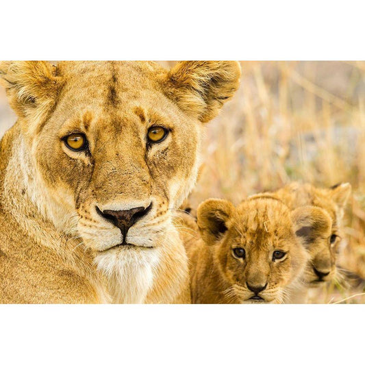 Africa-Tanzania-Serengeti National Park African lioness and cubs Black Modern Wood Framed Art Print by Jaynes Gallery