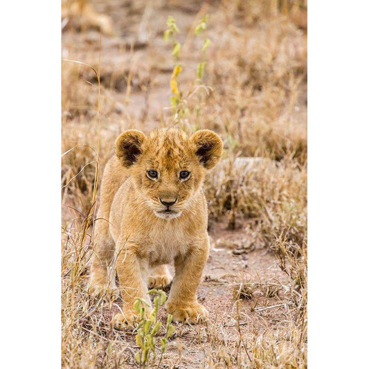 Africa-Tanzania-Serengeti National Park African lion cub close-up Black Modern Wood Framed Art Print by Jaynes Gallery