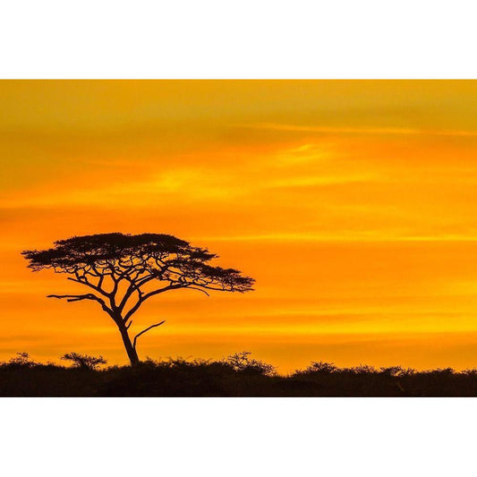 Africa-Tanzania-Serengeti National Park Acacia tree silhouette at sunset Black Modern Wood Framed Art Print by Jaynes Gallery