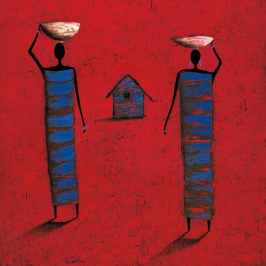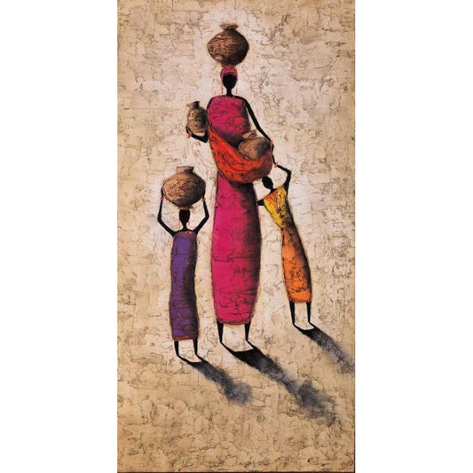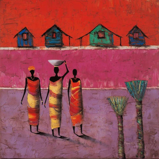 Village Life Black Modern Wood Framed Art Print by Rauscher, Michel