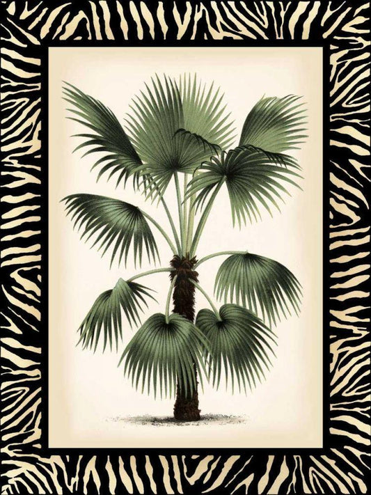 Small Palm in Zebra Border I White Modern Wood Framed Art Print with Double Matting by Vision Studio