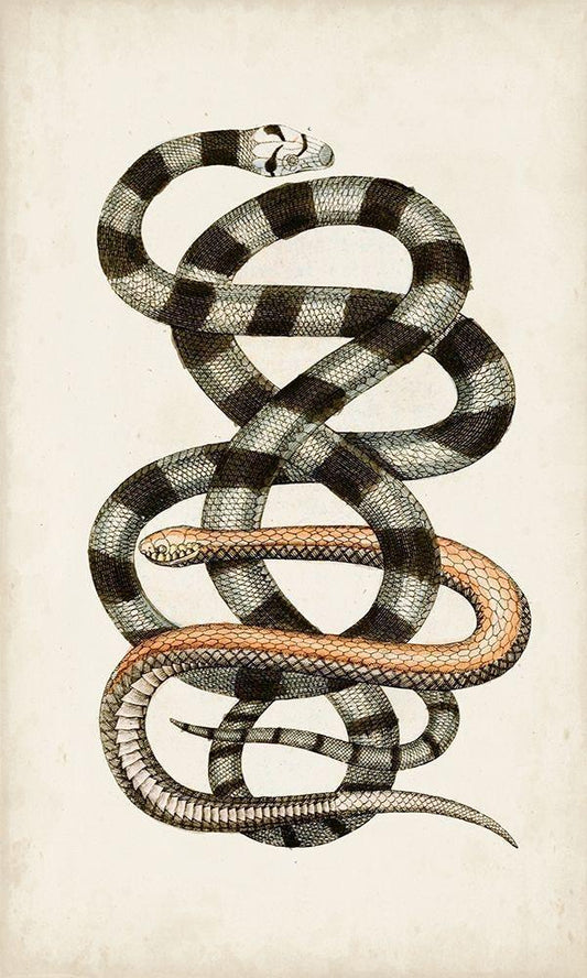 Antique Snakes I White Modern Wood Framed Art Print with Double Matting by Vision Studio