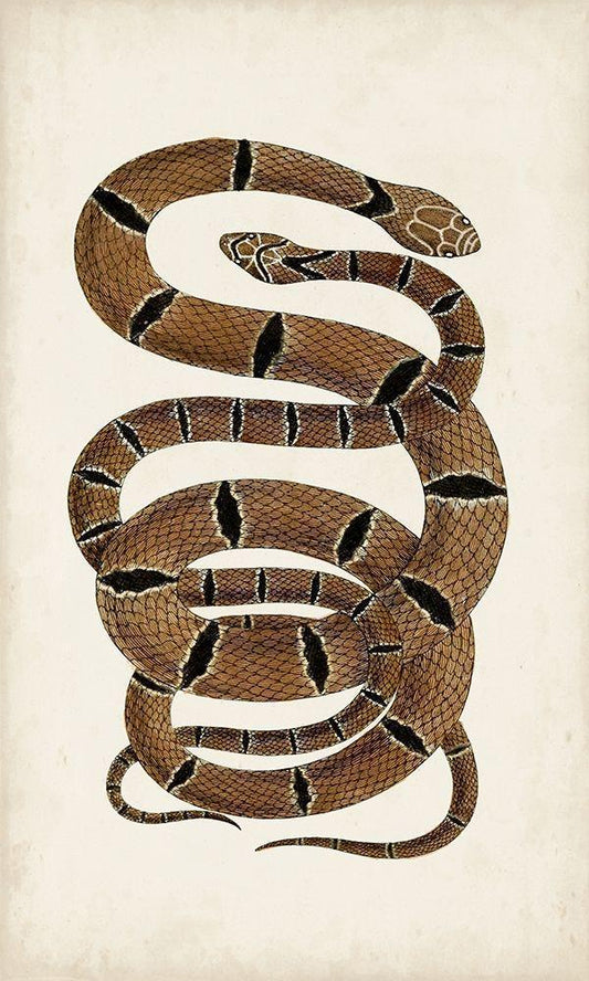 Antique Snakes IV White Modern Wood Framed Art Print with Double Matting by Vision Studio