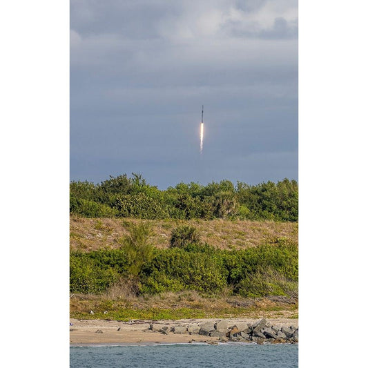 USA-Florida-Port Canaveral-A Space X rocket being launched from Cape Canaveral White Modern Wood Framed Art Print by Looney, Hollice