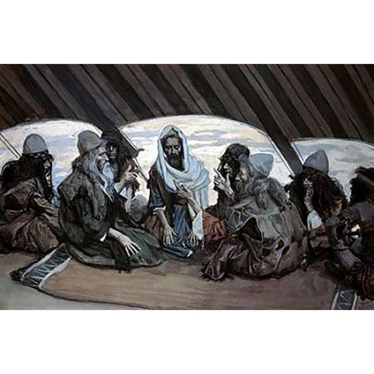 Moses and Jethro White Modern Wood Framed Art Print by Tissot, James