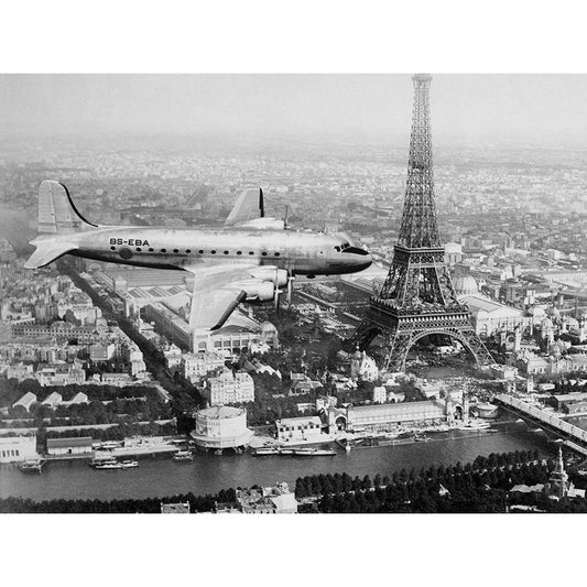 Airplane over Paris White Modern Wood Framed Art Print by Anonymous