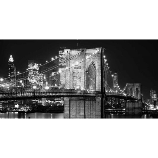 Brooklyn Bridge at Night White Modern Wood Framed Art Print by Lowe, Jet