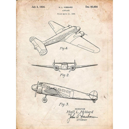 PP945-Vintage Parchment Lockheed Electra Airplane Patent Poster White Modern Wood Framed Art Print by Borders, Cole