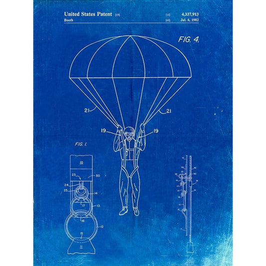 PP187- Faded Blueprint Parachute 1982 Patent Poster White Modern Wood Framed Art Print by Borders, Cole