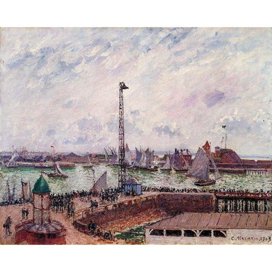The Pilots Jetty, Le Havre Gold Ornate Wood Framed Art Print with Double Matting by Pissarro, Camille