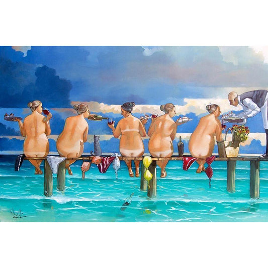 Wine and Cake on Jetty Gold Ornate Wood Framed Art Print with Double Matting by West, Ronald