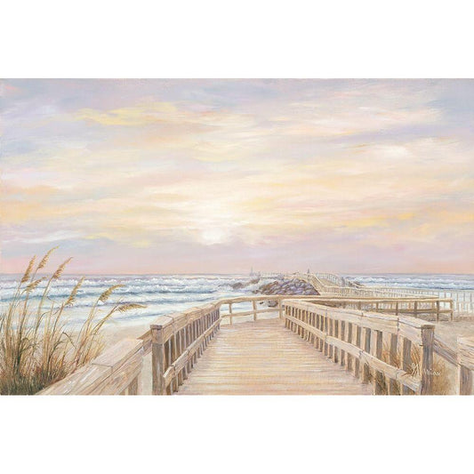 Ponce Inlet Jetty Sunrise Gold Ornate Wood Framed Art Print with Double Matting by Janisse, Georgia