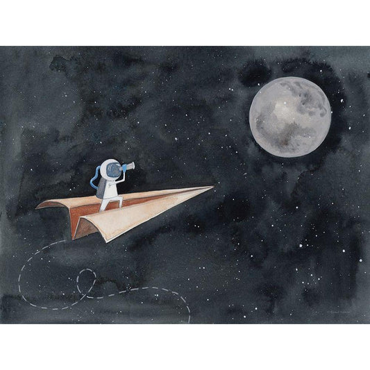 Paper Airplane to the Moon Gold Ornate Wood Framed Art Print with Double Matting by Nieman, Rachel