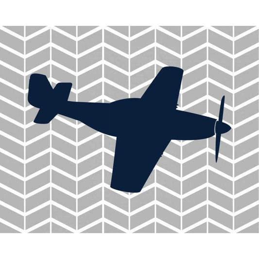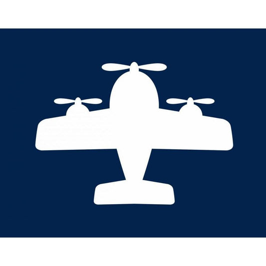 Airplane on Navy Gold Ornate Wood Framed Art Print with Double Matting by Robinson, Tamara