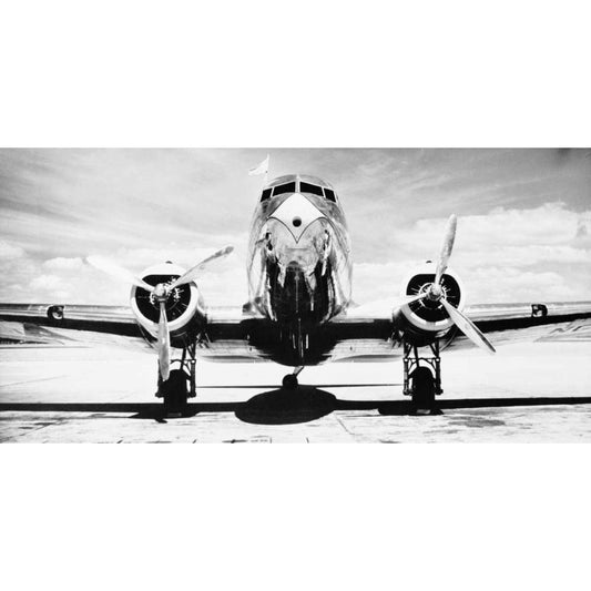 Front View of Passenger Airplane Gold Ornate Wood Framed Art Print with Double Matting by Anonymous