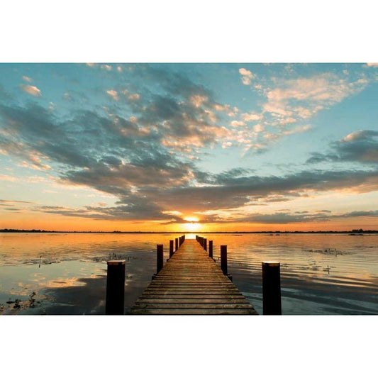 Morning Lights on a Jetty Gold Ornate Wood Framed Art Print with Double Matting by Pangea Images