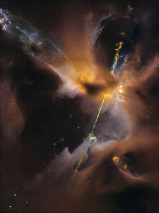 A Newborn Star Shoots Twin Jets Out Into Space White Modern Wood Framed Art Print with Double Matting by NASA