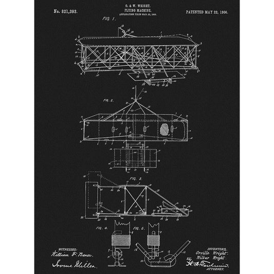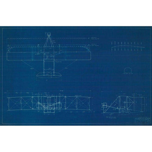 Wright Brothers Plane,Blueprint Black Modern Wood Framed Art Print by Anonymous