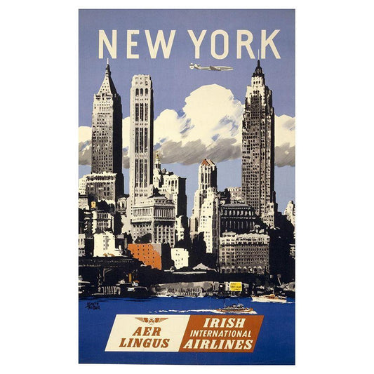 Trav Ny Aer Lingus Black Modern Wood Framed Art Print by Vintage Apple Collection