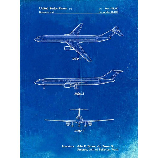 PP751-Faded Blueprint Boeing Supersonic Transport Concept Patent Poster Black Modern Wood Framed Art Print by Borders, Cole