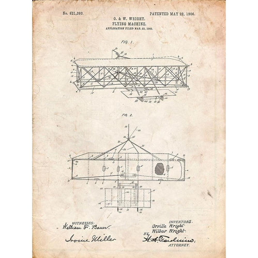 PP1139-Faded Blueprint Wright Brothers Aeroplane Patent Black Modern Wood Framed Art Print by Borders, Cole