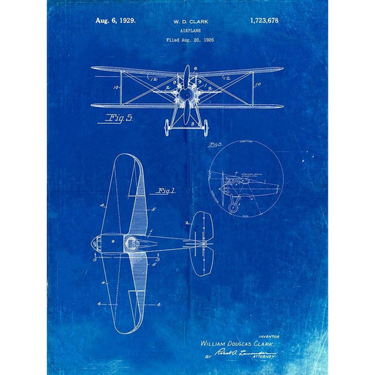 PP68-Faded Blueprint Staggered Biplane Aircraft Patent Poster Black Modern Wood Framed Art Print by Borders, Cole