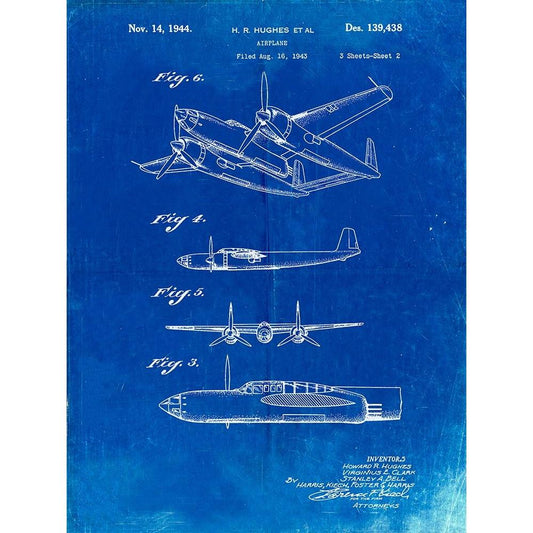 PP69-Faded Blueprint Lockheed XP-58 Chain Lightning Poster Black Modern Wood Framed Art Print by Borders, Cole